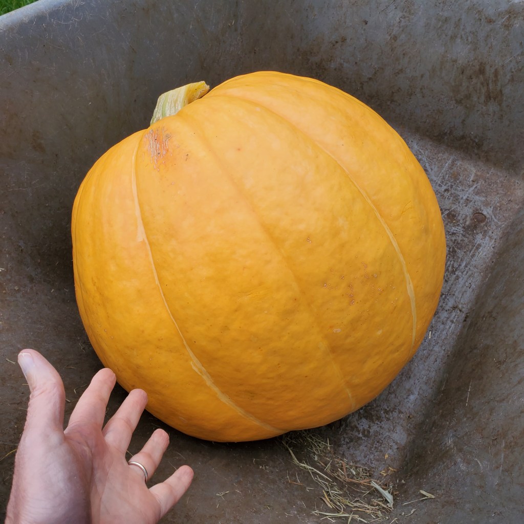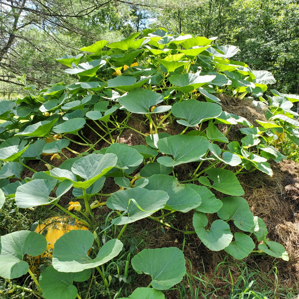 As usually happens sooner or later, the goats discovered the other day that they had a magnificent, huge, tasty pumpkin patch growing right in their own backyard.