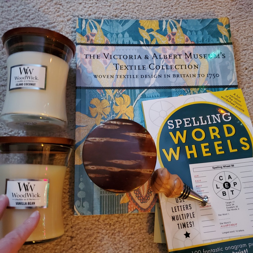 - a vanilla scented candle (there are 2 vanilla and 1 coconut)