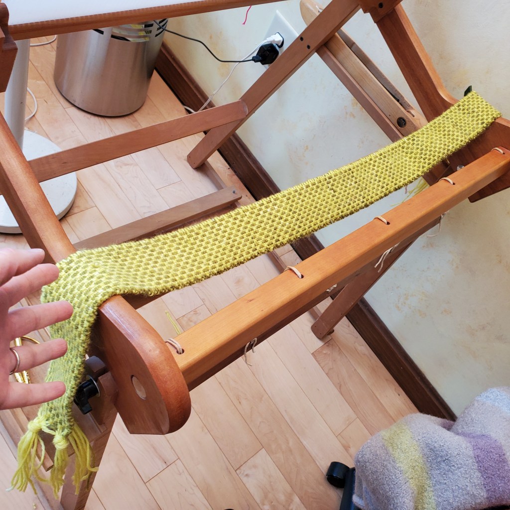 I finished this weaving. It still has no final destination. But I think I’ll trim the edges with some beadwork. I am going to pull out my bead loom for the first time in years.