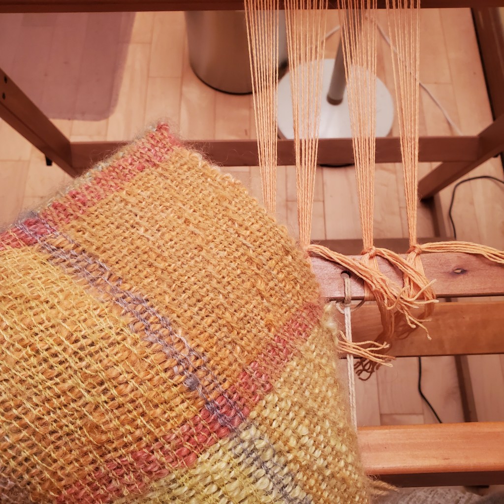 Hmm, I thought Cushing Apricot (on loom) was closer to Pro Chem Spiced Pumpkin (in blanket) than it really is, I guess. It’s pinker. Makes sense. An apricot & a spiced pumpkin aren’t remotely the same thing.