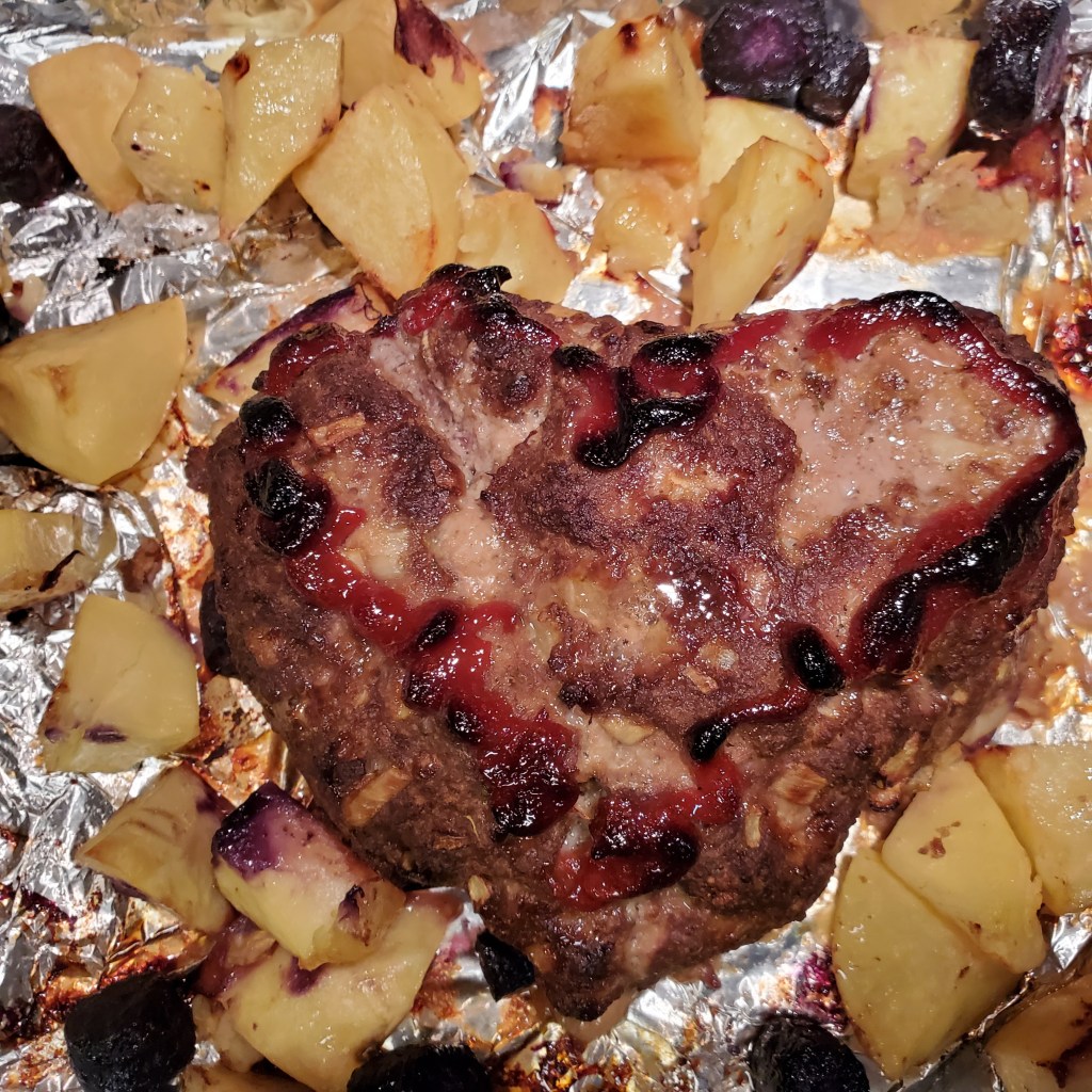 Looks a little gross, but it was delicious – it’s a heart-shaped meatloaf.