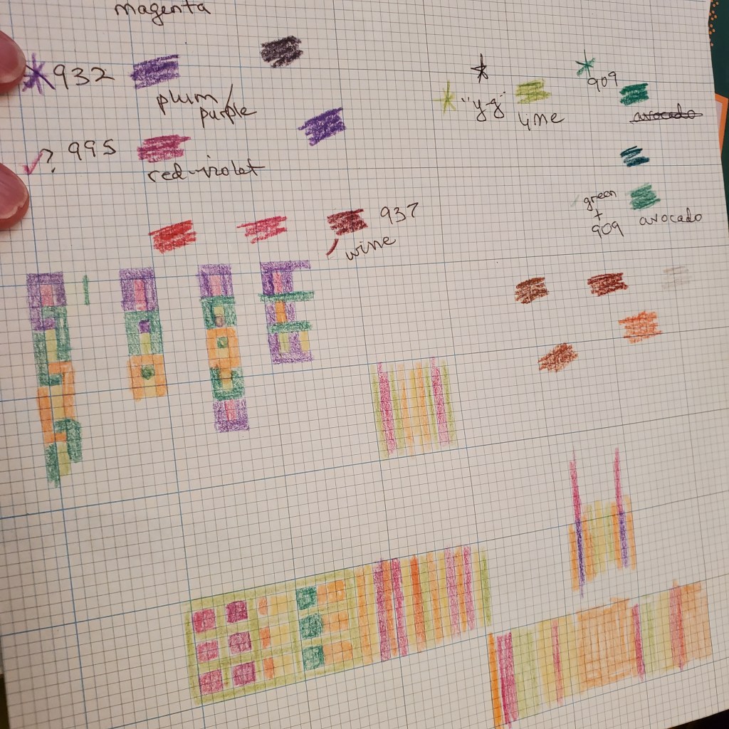 What a pathetic excuse for a day off. I read some periodicals, I did some sudokus, I pitted a huge bag of cherries. & I futzed around with my colored pencils thinking about Weaving School in August where I’ll be attempting a warp-faced rug, which I will call Ruggy McWarpface, for my studio/playroom/office. Not getting too far.