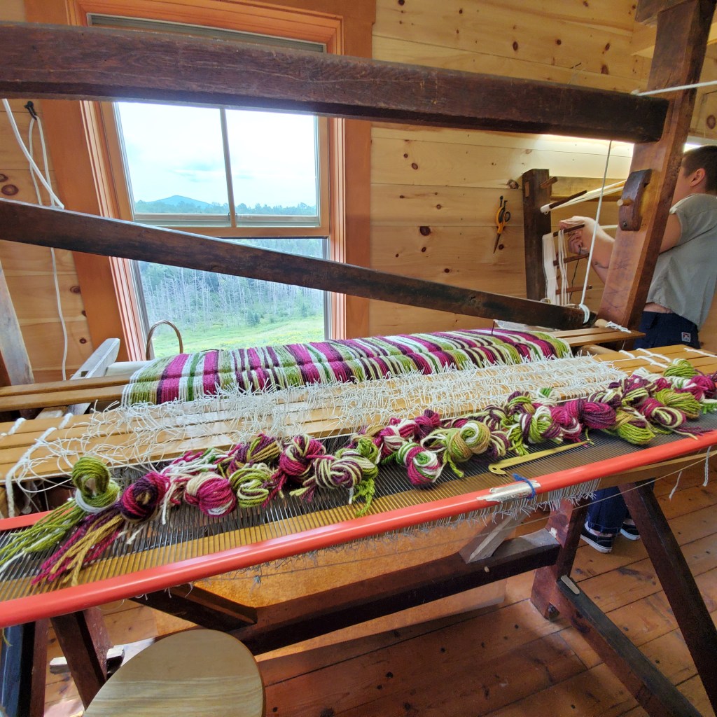 The rug is tough going. The wool is close-set (warp face) and sticky to begin with. I have to stand up on the pedals and yank on heddles to make a shed.