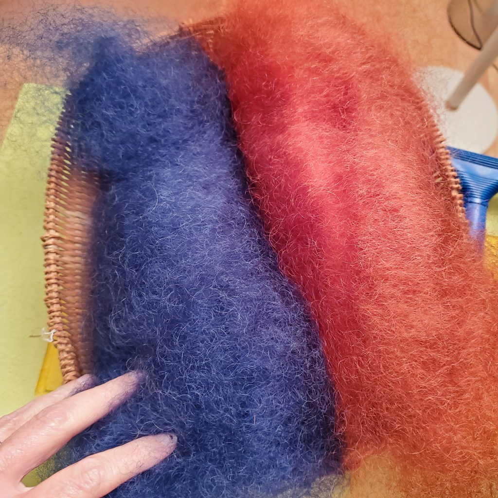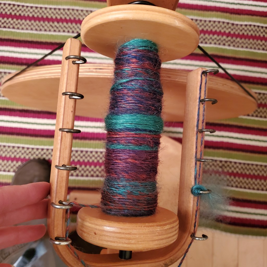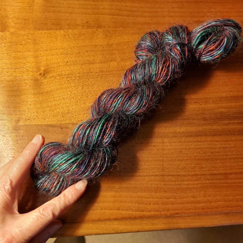 Some weeks ago I saw the most beautifully dyed little package of Wensleydale locks at the St. Alban’s farmer’s market. Dyed locks is what I got. Dyed locks is not something I need to buy. But both Xopher & I just couldn’t stop admiring that blue, so I bought the locks. There wasn’t enough to make a skein out of, so mixing was unfortunately necessary. I hope I did it justice. First handspun skein of the new season.
