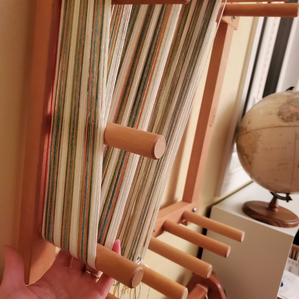 I motivated myself a little bit this afternoon to start a warp to practice checks, which is what my next project at Weaving School is supposed to be. What the heck was the cutesy name for it again? Oh yeah, cherryderry.