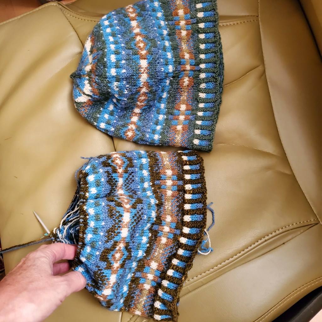 Feeling that the Evergreen and Wedgewood just didn’t provide enough contrast together, about a month ago I dyed a darker color, and soon embarked on a Redo. Reserve judgment till it’s done.