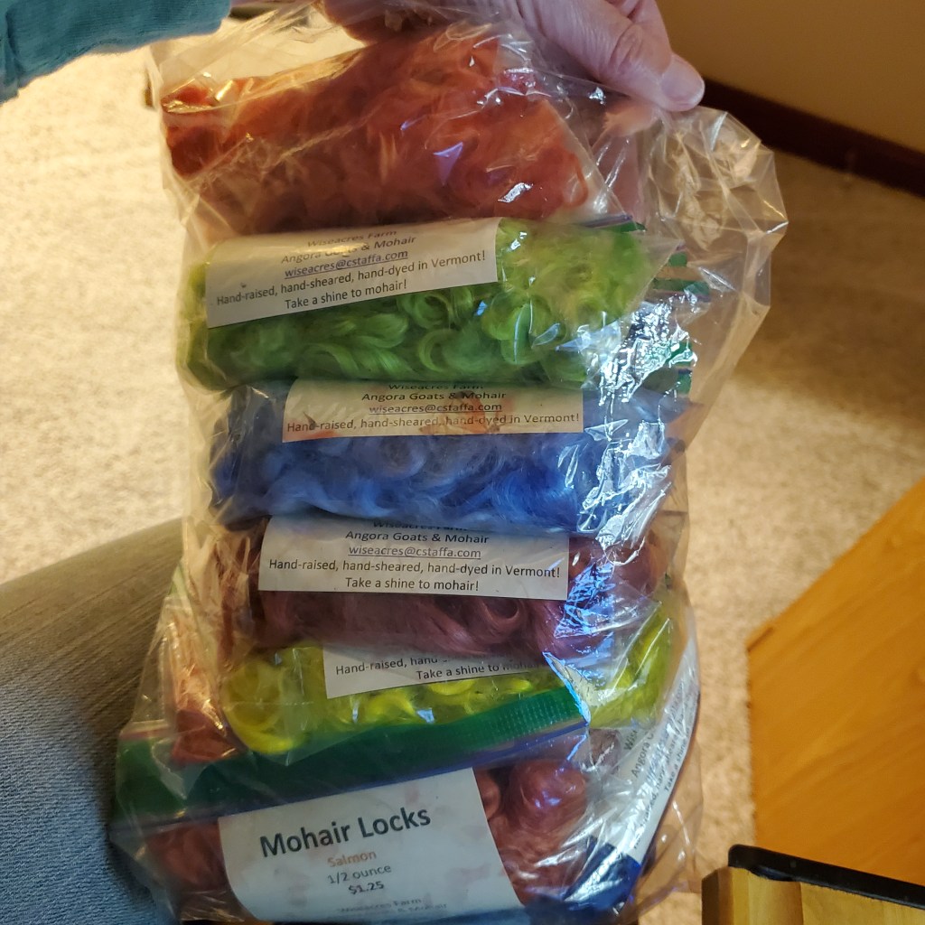 And another thing I’ve been doing is packaging bite-sized morsels of mohair for consignment.