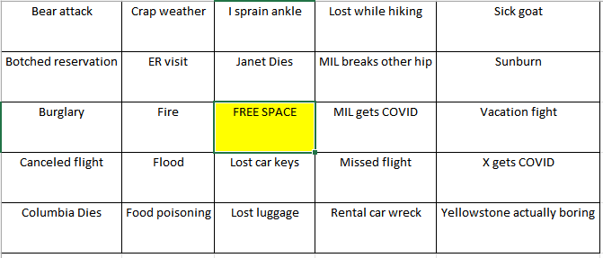 I think I worry as much as the average person. The bingo card is along the lines of my anti-gratitude habit. I write down things that go wrong as well as blessings so that I can keep in mind that things always go wrong – it’s part of life, not a disaster or a deviation. And this way if multiple things go wrong I can cheer myself up playing bingo!