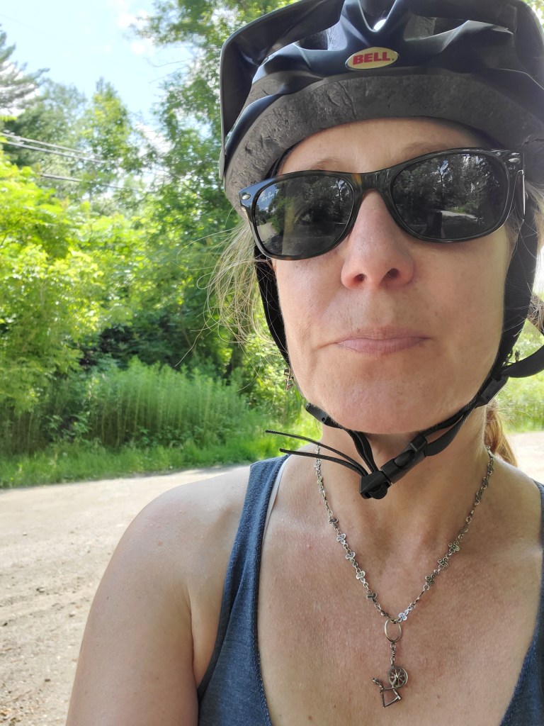 Ready to Roll Either Way christinestaffa Uncategorized July 9, 2023 1 Minute Spinning wheel around my neck, and bike helmet on my head. Share this: Click to share on X (Opens in new window) X Click to share on Facebook (Opens in new window) Facebook Like Loading... Related Published by christinestaffa My life's journey has taken me from the streets of New York, up the Hudson Valley, to a little goat farm under Vermont's highest mountain. View all posts by christinestaffa Published July 9, 2023