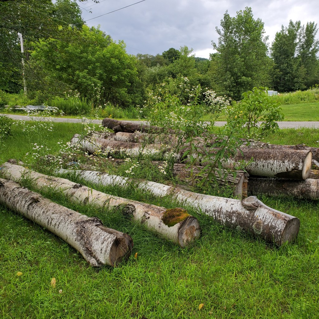 This is a very scenic bit of landscaping we’ve added to the front yard this year. You just throw some aspen logs down and let the weeds grow up between them.