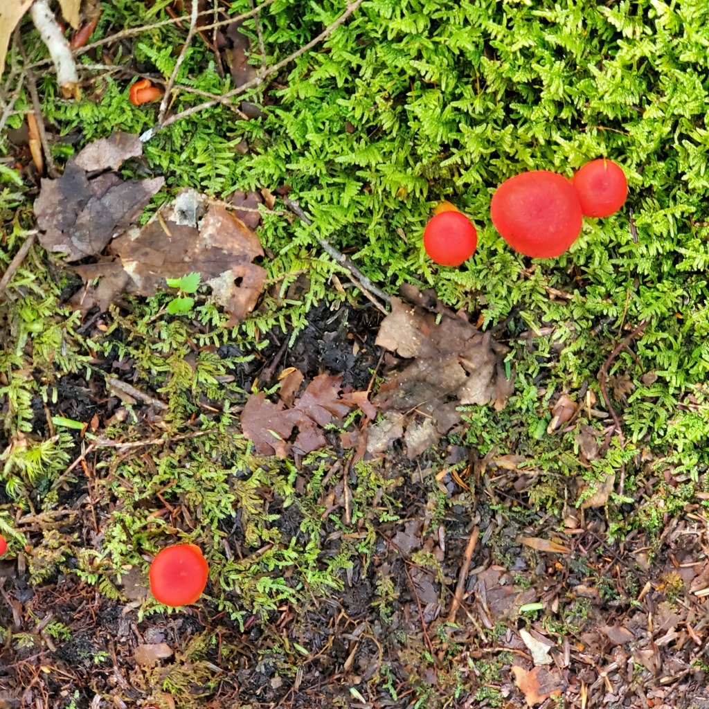 Here’s a picture of bright red fungus we saw on a walk over the weekend.