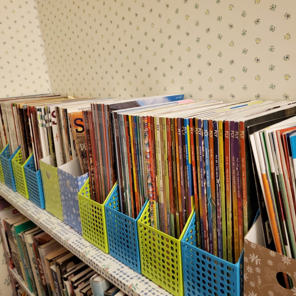 Occasionally I still work on my “Inventory of Everything” project. Today I learned I have exactly 100 issues of Spin-Off, fondly dating back to Summer 1998 – when we first got angora goats. I also have 24 Wild Fibers – that was a good one, now defunct. And 35 Ply. I don’t like the vibe of Ply as much as Spin-Off somehow.