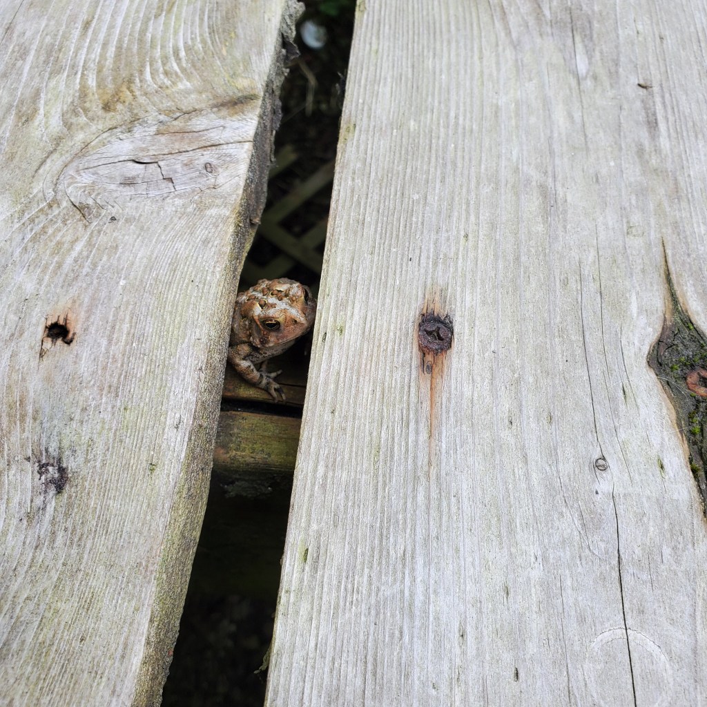 Toad-in-the-Hole christinestaffa Uncategorized August 11, 2024 1 Minute Toady who lives in/on/under/between our front porch. Share this: Click to share on X (Opens in new window) X Click to share on Facebook (Opens in new window) Facebook Like Loading... Related Published by christinestaffa My life's journey has taken me from the streets of New York, up the Hudson Valley, to a little goat farm under Vermont's highest mountain. View all posts by christinestaffa Published August 11, 2024