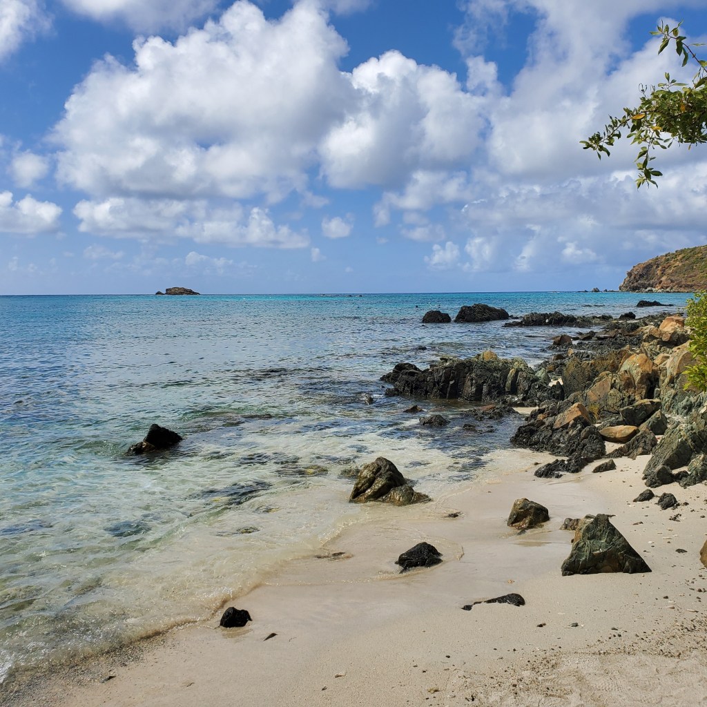So on Sunday, we arrived; on Monday, we ferried from St. Thomas to St. John, drove around and got our bearings. On the far eastern end of the island we stopped at a little beach called “Haulover.” I asked someone coming out of the water if the snorkeling was good. “Best snorkeling on the island!” she said. So the next day we hauled ass back to Haulover. It was indeed really good. The beach was rockier than the lovely and more famous beaches we’d find later in the week. But less populated with people and more populated with colorful fishies.